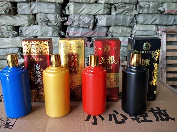 蒙砂酒瓶是在制品玻璃上,粘附一定大小面積的玻璃色釉粉,玻璃瓶廠經(jīng)過580~600℃的高溫烘烤,使玻璃色釉涂層凝結(jié)在玻璃外表,并顯現(xiàn)出具有與玻璃主體不同顏色的一種裝飾辦法。粘附玻璃色釉粉,可用排筆涂刷,亦可用膠輥滾涂。經(jīng)過絲印加工,能夠得到蒙砂面的樓空圖案。 其辦法是:在玻璃制品外表上,絲印一層由阻熔劑構(gòu)成的圖案紋樣。