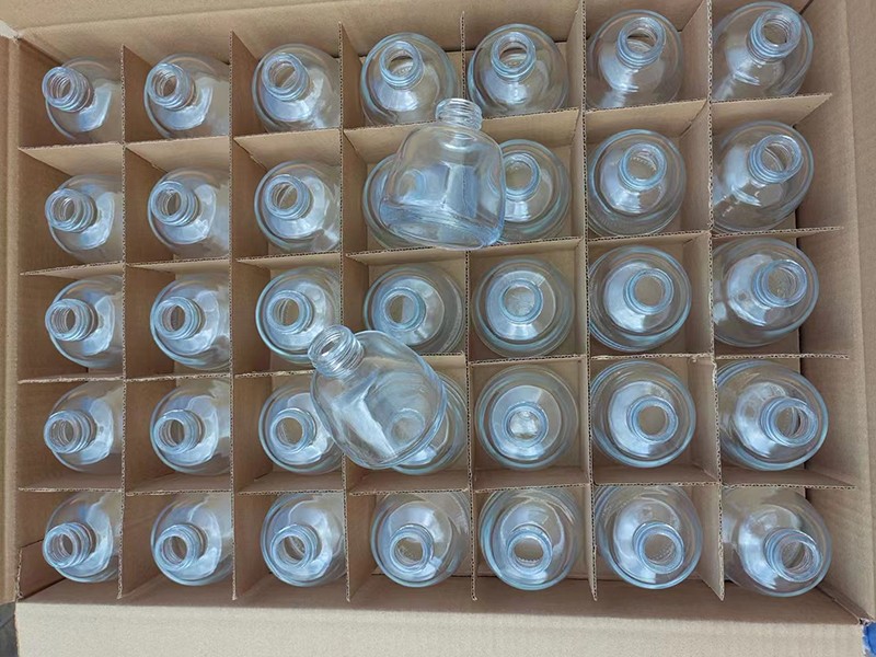 玻璃瓶廠從出瓶子的時(shí)候工人先看一下產(chǎn)品大致狀況,然后通過一段時(shí)間的退火,又車間主任在仔細(xì)檢查,大概狀況有以下幾種,提供我們了解一下。 玻璃瓶瓶身變形:因?yàn)槌尚文_M(jìn)去的瓶子還沒有無缺定形,這時(shí)分料滴溫度和感染溫度太高常常會使玻璃瓶子下塌變形,假定瓶身的上部太重也會如斯。偶然瓶的底部未冷卻到必定溫度會印上輸送帶的紋痕而使瓶底不平。